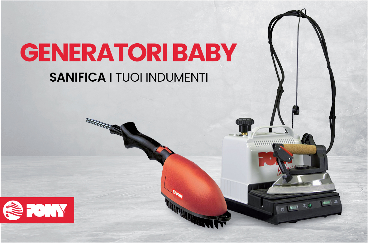 Altro potente mezzo di sanificazione e pulizia, è rappresentato dal vapore. PONY propone una vasta gamma di generatori con svariate capacità e potenze. Abbiamo attrezzato i nostri generatori di vapore con lance, pistole e spazzole per renderli validi strumenti anche nella sanificazione ambientale. Per piccole esigenze proponiamo il nostro generatore di vapore PONY BABY che con attacchi rapidi consente di sostituire il ferro da stiro con spazzola a vapore per la sanificazione di tessuti e capi di abbigliamento.