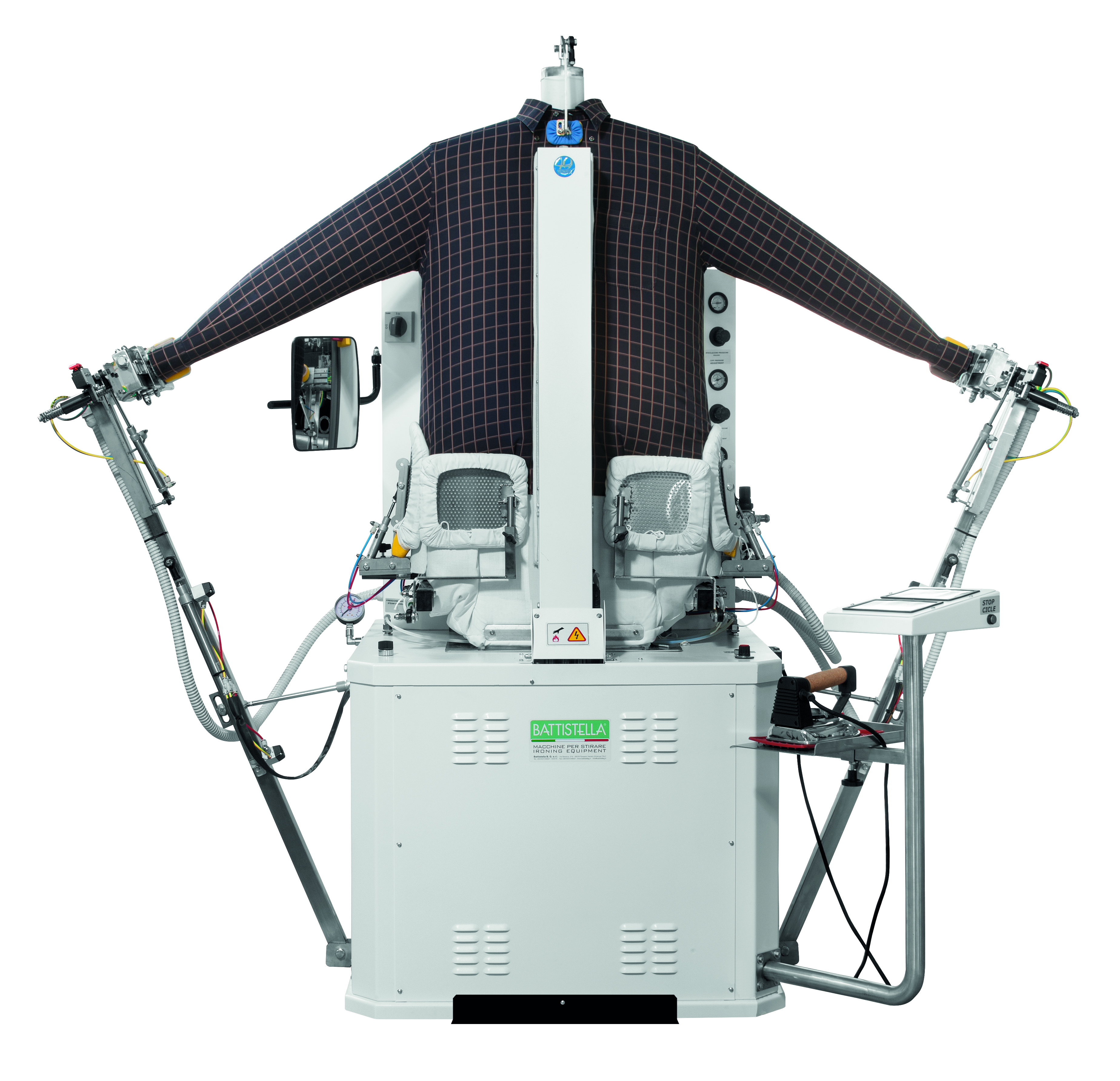 Oggi la Battistella B.G. può contare su una gamma di prodotti invidiabile. Il Manichino stira camice CIRCE (capacità di 40 camice all’ora) costituisce la punta di diamante della Battistella B.G. e si differenzia da altri prodotti simili per la sua compattezza. “La nostra Circe, ci racconta Michele Battistella figlio di Daniele, occupa circa il 30% di spazio in meno rispetto ad altri prodotti analoghi. Un fattore da non sottovalutare in un mondo dove la lavanderia tradizionale è sempre tirata con gli spazi”.