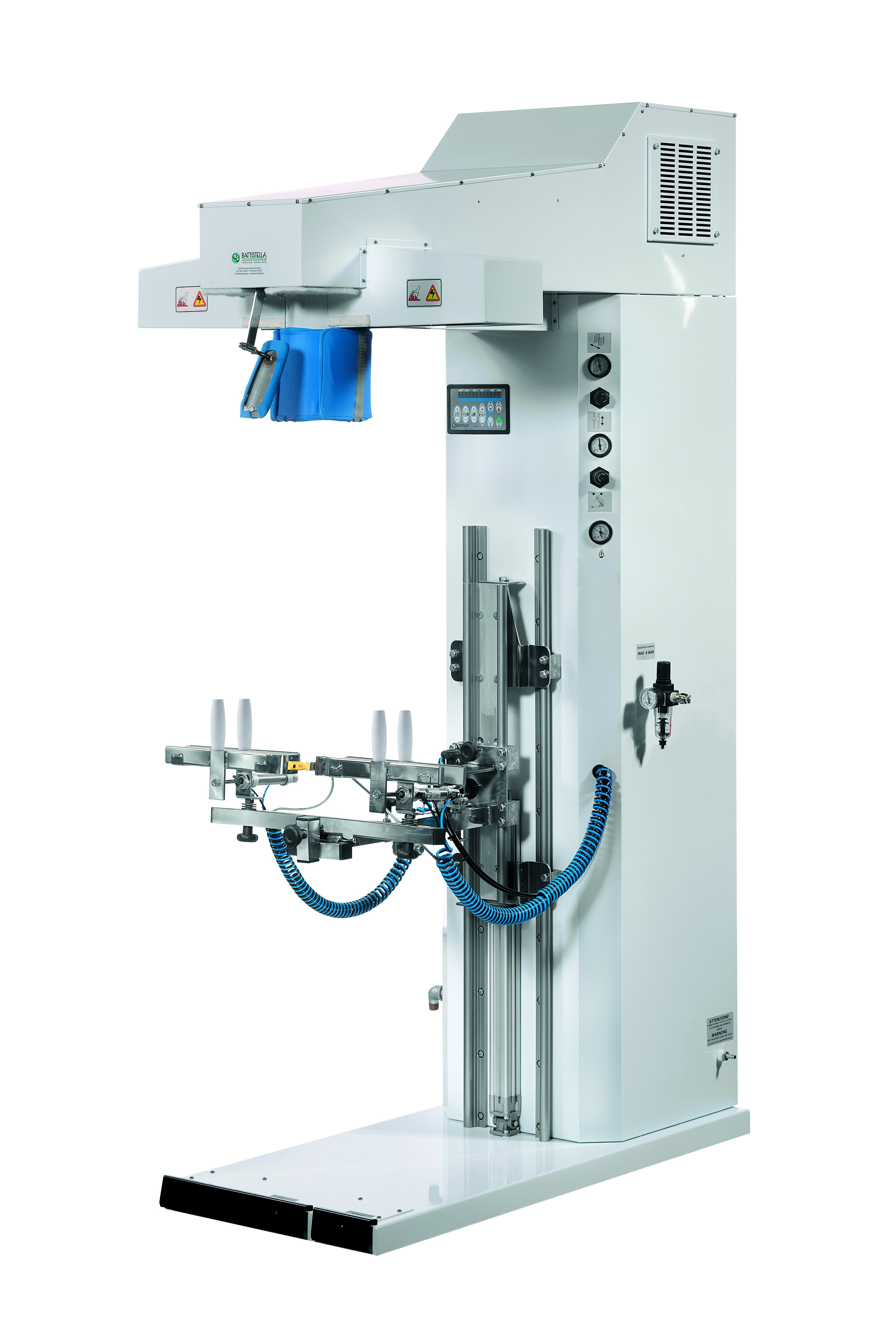 “Si tratta di un topper per lo stiro dei pantaloni. Dotato di un touch screen intelligente che riconosce la taglia del pantalone. Il valore aggiunto è quello della compattezza e leggerezza, ingombra poco e non ha un peso rilevante se si vogliono fare spostamenti interni alla lavanderia”.