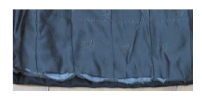 Acetate/viscose lining: After laundering, a client complained about the torn jacket lining on its lower