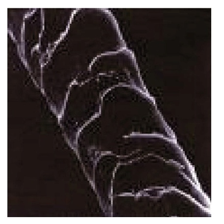 WOOL FELTING: it is caused by the presence of scales on the fibers as shown on the photo: