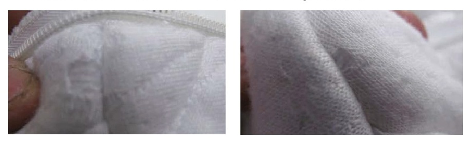 A viscose mattress cover: the contact with the bed structure or the net has caused the tearing of viscose.
