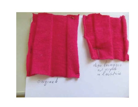 wool will felt (the garment becomes compact by reducing its dimensions); this kind of shrinkage, called “felting”, is irreversible.