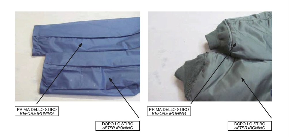 When winter coats are ironed by the finishing machines and the dry heat is high, the fabric shrinks. The
