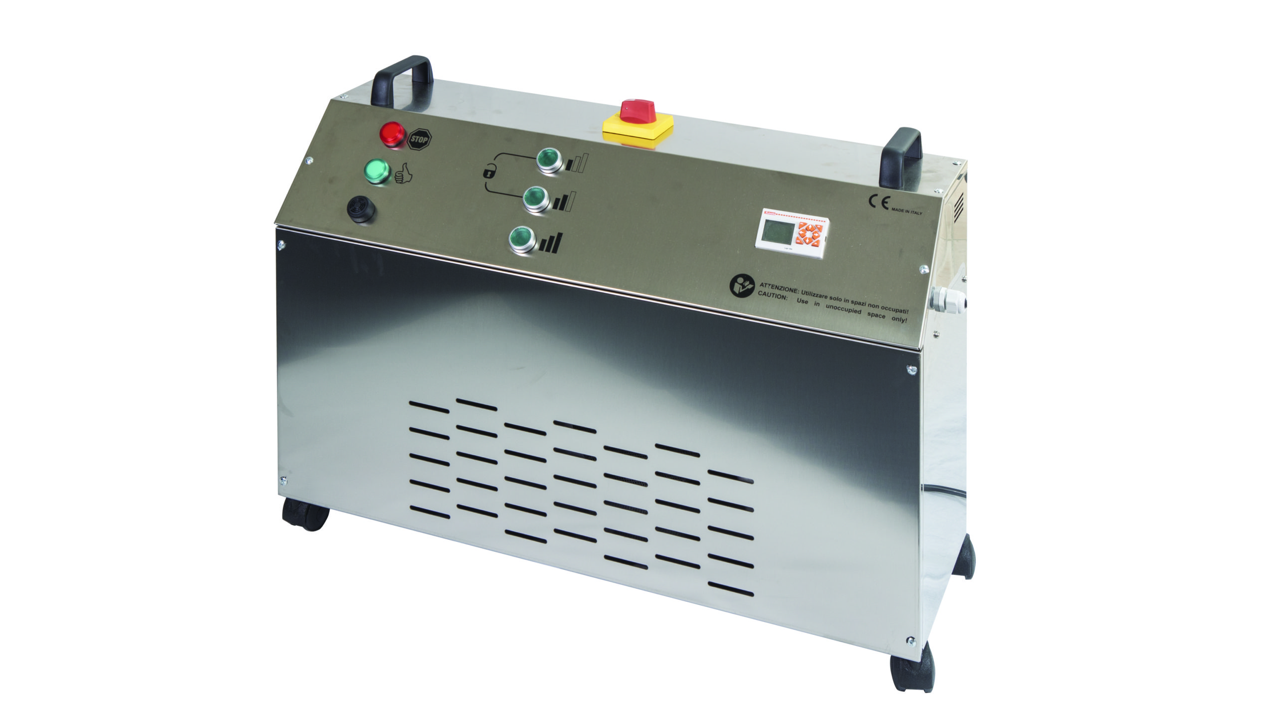 “As far as sanitizing rooms and air is concerned, we also designed, apart from the 80-160 portable generators and the industrial versions 500 – 1000, a semi-professional version of ATLANTIDE for 240 cubic meters rooms. This version has been designed for clients who need to sanitize a large space but who do not want to invest in industrial sanitizing models.