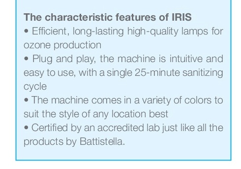 It turns out that, from the aesthetics point of view, the product has been perceived as too technical and too “industrial” looking to be placed in certain types of work environments. Therefore, we decided to design a product that could do both strike with its beauty and be appreciated for its technical features. Consequently, we focused on a partially different market target”. IRIS, the new ozone cabin, has been designed for professionals such as beauticians, hair stylists, hotels, but also laundries orientated towards the aesthetic standards of machines.