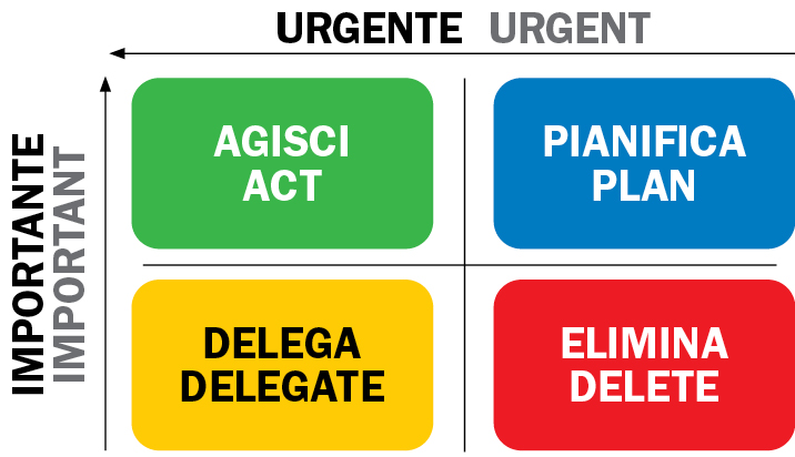 The fundamental key to define objectively, in advance, is the difference between important and urgent. Eisenhower said: “What is important is rarely urgent, and what is urgent is rarely important”. If we can understand this difference, we will be able to easily prioritise the projects and the assets separating what is urgent or not, classifying the activities, including the daily tasks, according to their urgency and/or importance degree.