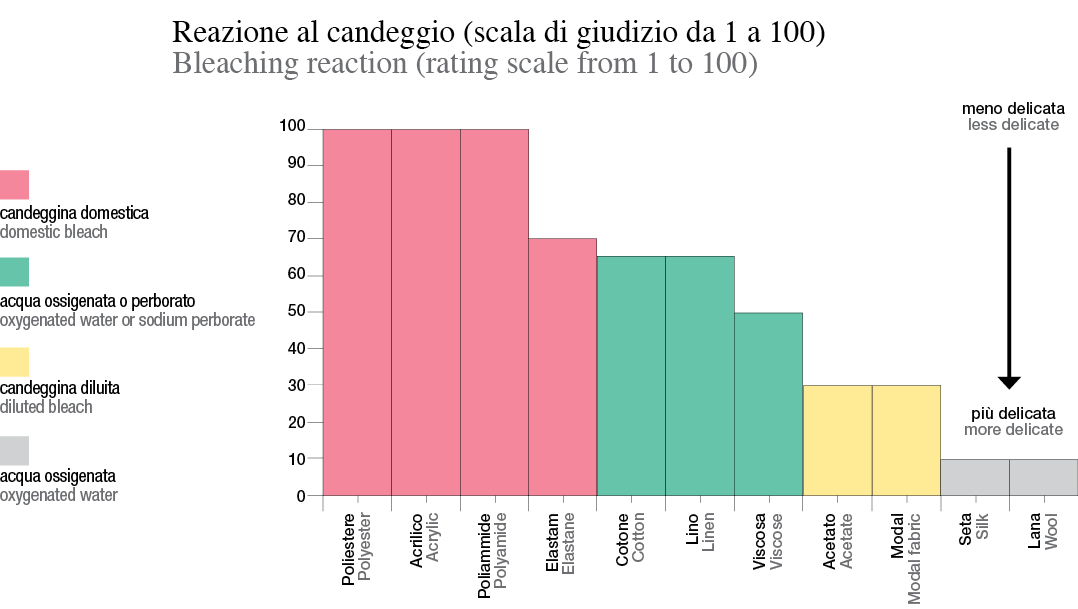 Nell’ambito della lavanderia e del trattamento dei capi e in particolare dell’uso del candeggio, è necessario porsi alcune domande, che potremmo sinteticamente riassumere nel seguente modo: a cosa serve il candeggio? Quanti tipi di candeggio ci sono? A cosa serve l’ottico? Quali danni si possono creare usando il candeggiante e l’ottico?
