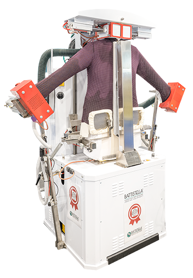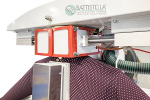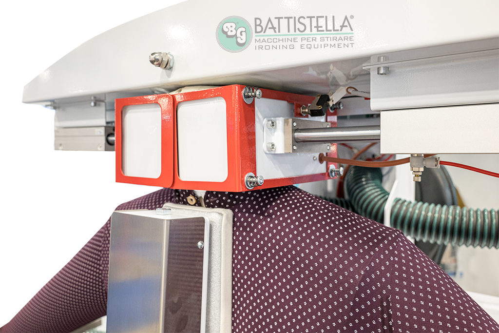 - Ottimizzazione dei tempi: la stiratura simultanea di camicia, collo e polsini elimina il passaggio aggiuntivo in pressa, permettendo di risparmiare minuti preziosi, un aspetto cruciale nell’ottica di margini di lavoro sempre più ridotti;
