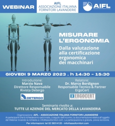 Home News VIDEO WEBINAR ERGONOMIA – MISURARE L’ERGONOMIA, DALLA VALUTAZIONE ALLA CERTIFICAZIONE DEI MACCHINARI News VIDEO WEBINAR ERGONOMIA – MISURARE L’ERGONOMIA, DALLA VALUTAZIONE ALLA CERTIFICAZIONE DEI MACCHINARI By Alessandro Martemucci - 16 Marzo 2023 0 917 FacebookTwitterPinterestWhatsApp RELATED ARTICLESMORE FROM AUTHOR EXPODETERGO 2026 e Nuova Piattaforma Detergo.EU, appuntamento il 26 novembre 2024, Fiera Milano Rho Manichino Circe CP di BATTISTELLA, lo stiro di qualità a TEXCARE ZUCCHETTI CENTRO SISTEMI (ZCS), innovazione sostenibile per la lavanderia industriale